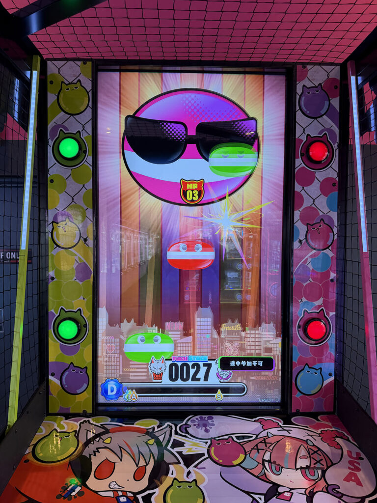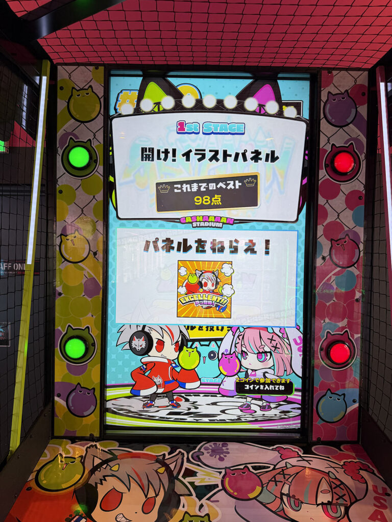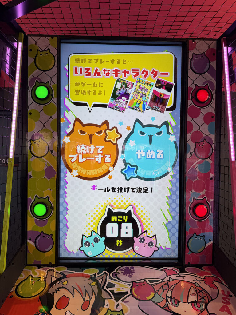 2025年10月のロケテストでは、遊べるゲームは全部で7つ用意されていたようです。ステージは全4ステージ構成。最初のステージ1(ゲーム:撃退!スペースキャット)・最終ステージ4以外(ゲーム:倒せ!ボスにゃんこ)は、ステージ毎のゲームはルーレットにボールを投げて当たったゲームをプレイします。