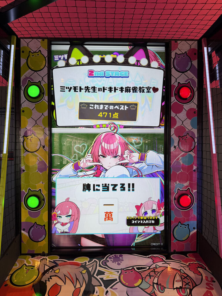 2025年11月のロケテストでは、全3ステージ構成と1ステージ減っていました。さらに、コナミアーケードゲームキャラクターが登場するゲームが追加されました。このゲームを遊ぶには、1回目を全ステージクリア後にコンティニューで続けてプレイすると遊ぶことができます。コナミアーケードゲームキャラクターが登場するゲームは今回のロケテスト版では、ステージ1が「開け!イラストパネル」→ステージ2が「ミツモト先生のドキドキ麻雀教室」→ステージ3が「たたけ~♪ポップ君」でした。2回目のプレイを全ステージクリアすると、ゲーム終了です。