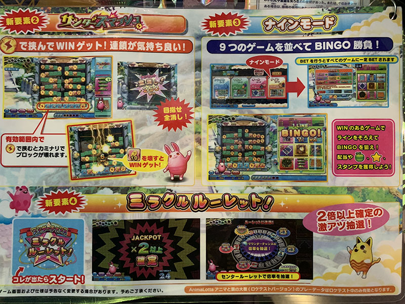 ◆コナミ『グランドクロス』シリーズ最新作『グランドクロス レジェンド』ロケテスト、10月6日頃からドラマ港北インター店で開催![]() ![]() 2013年12月に稼働した『ドリームスフィア グランドクロス』以来となる、『グランドクロス』シリーズ最新作です。初代が登場したのが2006年なので、とても息の長いシリーズです。 今回のロケテストは、稼働中の『グランドクロス』から4サテライトを『レジェンド』にコンバートしていました。10月5日にネット上でこのロケテストの話題があがっていましたが、実際に稼働開始したのは6日(土)の11時過ぎあたりのようです。10時の開店時間には間にあわなかったようです。 筆者は11時30分頃に到着したのですが、『レジェンド』用に用意していた4サテライトはすでに埋まっていました。熱心にプレイするユーザー(スマホのカメラで演出を動画で撮っている方も!)、周りで見守るコナミスタッフと、期待作のロケテストであることが現地から感じました。 ロケテスト期間は明記されていませんでした。Youtubeで『グランドクロス レジェンド』で検索してみると、早速動画がアップロードされています。 『グランドクロス レジェンド』の遊び方です。新要素についても明記されています。 ![]() ![]() ◆コナミ『アニマロッタ』シリーズ最新作『アニマロッタ アニマと雲の大樹』ロケテスト、10月5日~14日までネバーランド港北店で開催![]() ![]() ![]() アニマロッタシリーズ数えて、『アニマと雲の大樹』が第5作目になります。『アニマロッタ おとぎの国のアニマ』(2017年6月稼働)以来となる最新作です。 遊び方をみると、4つの新要素について説明が載っていました。 ![]() ![]() ![]() |