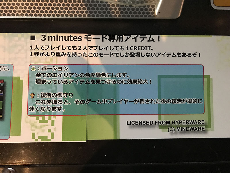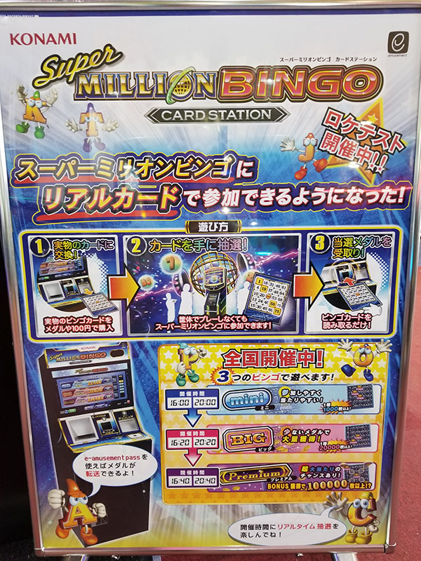 ◆EXA基板最新作『ヴァルキリウス』ロケテスト、高田馬場ゲーセンミカドで開催![]() ![]() ![]() ![]() EXA基板を使用した縦スクロールシューティングゲーム『ヴァルキリウス』のロケテストが行われたので、9月23日(日)高田馬場ゲーセンミカドへ足を運んでプレイしました。 このゲームは、2017年3月にリリースされた『Danmaku Unlimited 3』(Steam版・Android版・iOS版・Nintendo Switch版で配信中、Nintendo Switch版は日本では未配信)がベースになっているようで、アーケード版は一部システムが変更されている模様です。 このゲームは、いわゆる弾幕シューティングゲームです。弾幕をかいぐぐるのはこのゲームでも同じですが、敵を破壊すると敵が出していた弾がすぐに消えてしまうのでピンチでも比較的なんとかなったり、初心者でもわりと進めやすいゲームだと思います。 システムはシンプルで攻撃方法は、通常攻撃・ビーム・ボムの3種類です。ビームは威力が高いですが、自機の動きが遅くなります。自機の攻撃パターンは3種類用意されていて、ゲームスタート時に選択できます。広範囲に攻撃できるパターン、前方に集中させた火力重視パターン、一応広範囲タイプ(?)、です。 シンプルなシステムながら、弾幕シューティングの弾を避ける醍醐味と敵を破壊したときの爽快感が味わえるゲームでした。 参照:4gamer.net様 インディーズゲームの小部屋:Room#472「Danmaku Unlimited 3」 ◆コナミ『スーパーミリオンビンゴ カードステーション』ロケテスト、ラウンドワン横浜駅西口店で開催中![]() ![]() 『スーパーミリオンビンゴ』で、リアルにビンゴカードを発行できるゲームシステムの模様です。『スーパーミリオンビンゴ』同様にビンゴカードを購入するのですが、カードステーションベンダーでメダルを投入→ベッド購入することで、本物のビンゴカードが印刷されます。対象機種に参加していなくても開催時間になると抽選開始し、当選したらビンゴカードを読み取ってメダルを受け取ることができます。 3つのビンゴが用意されていて、好きなビンゴに参加することができます。抽選時間は、16時台と20時台の1日2回です。 ![]() ![]() ![]() ![]() ![]() ![]() |