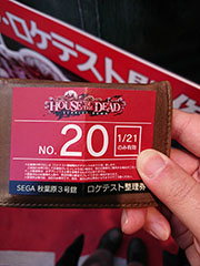 ◆セガ『HOUSE OF THE DEAD ~SCARLET DAWN~』プレ・ロケテスト、1月19日~21日までセガ秋葉原3号館で開催![]() ![]() ![]() ![]() 前作『HOUSE OF THE DEAD 4』から約12年経過しての最新作となります。筐体が店頭入口の目立つところに設置ということもあって、ギャラリーが多く付いていました。プレイするために必要な整理券が配布され、土日は整理券がすぐなくなりました。21日(日)9時30分頃現地に行ってみましたが、このゲーム目当てに約20人並んでいました。プレ・ロケテスト期間中、21日にプレイすることができました。 プレイモードは、「NORMAL MODE」と「MASTER MODE」の2種類用意されています。「MASTER MODE」は武器を2種類持ち込むことができますが、プレイしやすいのは「NORMAL MODE」ということで今回はこちらをプレイしました。 ![]() ![]() 今回のプレ・ロケテストバージョンは、CHAPTER0とCHAPTER1の2ステージ用意されています。CHAPTER1の最後にボスキャラが登場し、ボスキャラを倒すとゲーム終了です。ゲーム途中、ルートが分岐するところがありましたが、今回のバージョンでは選択できませんでした。 今回1人でプレイしましたが、ライフ3つなので「NORMAL MODE」でも気をつけないとゾンビから攻撃をくらってあっという間にライフがすべてなくなります。コンティニュー回数に制限ないので、CHAPTER1クリアまでコンティニューを使ってプレイできました。CHAPTER1クリアまでプレイすると15~20分かかり、ほとんどの人がCHAPTER1クリアまでプレイしていたので、プレイできるまで時間がかかりました。 ガンコントローラーはマシンガンタイプで、大きすぎず小さすぎず、特に違和感なくプレイできました。また筐体には「爆音ON/OFFボタン」が付いていました。爆音が不快なときは、このボタンを押して爆音をOFFにすることができます。 プレイ後にアンケートに回答して、カードステッカーをいただきました。 ![]() |