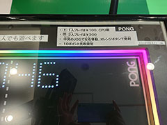 ◆アーケードタイプ『PONG』ロケテスト、6月6日~19日までタイトーステーション溝の口店・タイトーステーションアリオ蘇我店で開催![]() ![]() ![]() ![]() ![]() ![]() アタリの名作ビデオゲーム『PONG』がアーケードタイプになって登場です。2月開催『JAEPO2018』でタイトーブースなどに出展されていましたので、実際に見た人・触った人もいるかもしれません。 1プレイ100円で遊べます。2人で遊ぶ際は200円です。クレジット投入口は1プレイ側にありますので、そちらでクレジットを投入します。しばらく触っていないと、デモプレイが始まり自動的にボール・パドルが動きました。 |