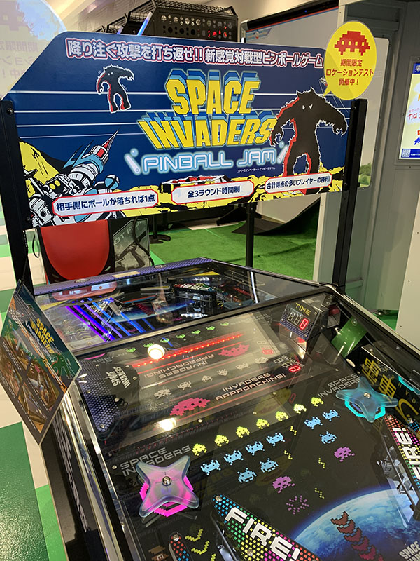 ◆『スペースインベーダー・ピンボールジャム』ロケテスト、12月21日よりタイトーステーション溝の口店で開催![]() ![]() ![]() ![]() ![]() 『スペースインベーダー』をモチーフにしたピンボールゲームのロケテストがタイトーさんの溝の口店で開催です。 1プレイ200円で、このゲームは2人対戦で遊びます(CPUとの対戦はありません)。ルールはピンボール同様、自分のところにボールが落ちないようにして、ボールを打ち返します。 相手にボールが落ちると1点加算され、自分にボールが落ちれば相手に1点与えてしまいます。 全3ラウンドの時間制で、ラウンド毎に時間とボールの個数が異なります。 ラウンド1:90秒・ボール2個 ラウンド2:60秒・ボール3個 ラウンド3:30秒・ボール6個