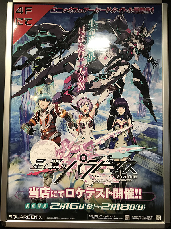 ◆スクウェア・エニックス新作『星と翼のパラドクス』ロケテスト、2月23日~25日まで開催→ロケテストレポートを更新しました![]() 2月23日~25日まで、東京・名古屋・福岡で開催されました。24日~25日まで、秋葉原で計3回プレイできました。秋葉原のロケテストで撮影した写真・動画をアップしました。 |