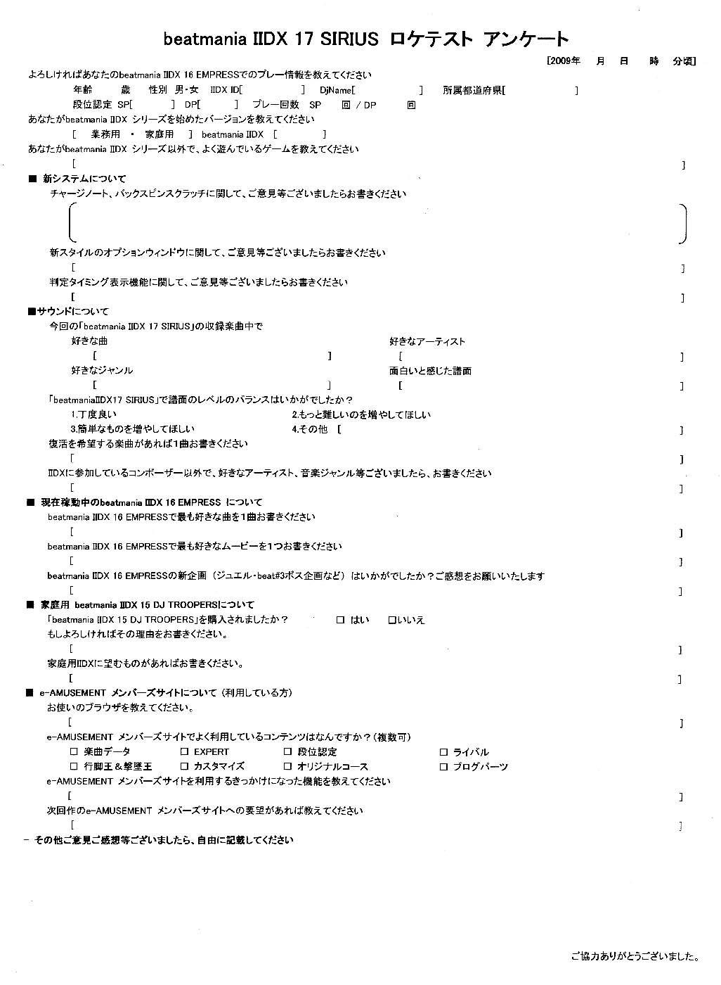 ロケテ会場にあったアンケートです。