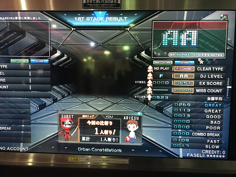 リザルト画面で10キーユニットの「5」を押すことで、詳細の成績を確認できるようになりました。下の写真は、左側が通常のリザルト画面です。右側の写真は、レーン別のDJ LEVEL表記です。