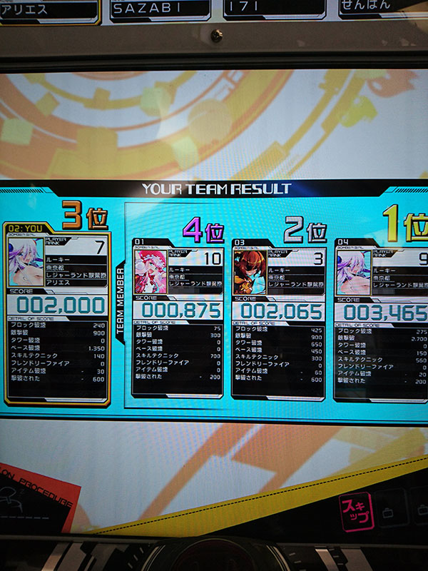 ロケテスト初日の早い時間から参加することができました。そこで、ある程度プレイ回数を重ねることができました。秋葉原は結構人も集まって、4席が満席状態であることも珍しくはなかったです。また、4月のロケテストでもそうでしたが既にやりこんでいるプレーヤーさんも見受けられ、動かし方などうまいなぁ、と感じました。
