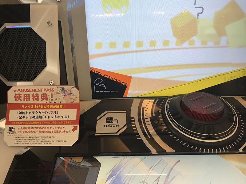 - e-Amusement PASSをリーダーにタッチして認証させます。e-PASSを持っていない人は、ゲストとしてゲームをプレイします。