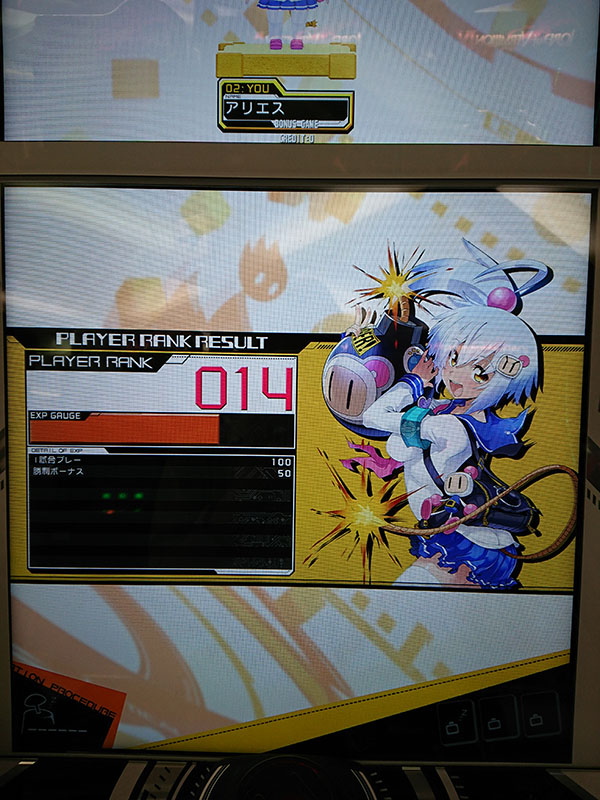GAUGEが満タンになると、プレーヤーランクが上がります。プレーヤーランクが「3」になると、ボンバーガール「パプル」が解禁され次回プレイ時から使用できます。
