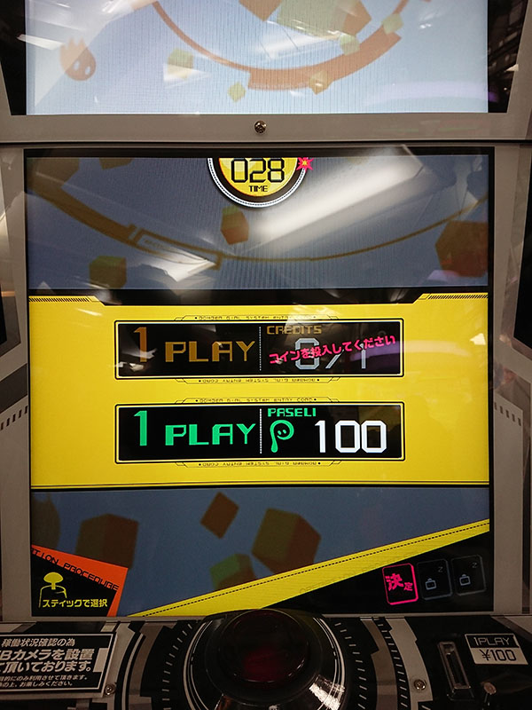 - クレジットを投入します。1プレイ100円です。11月のロケテストバージョンでは、PASELIが使用できるようになりました。