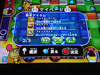 - ブロックをボムで破壊すると、アイテムが出てくることがあります。アイテムはこれまでのボンバーマンシリーズ同様「ファイアーアップ」、「ボムアップ」、「スピードアップ」の3種類です。