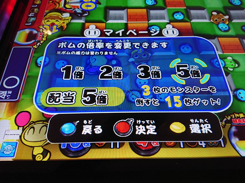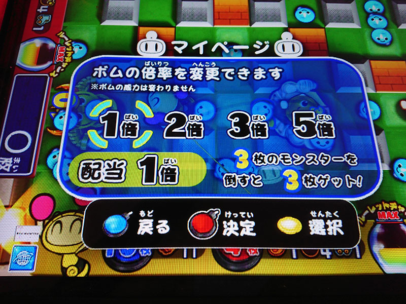マイページで変更できた「ボムの倍率」は、どこかのバージョンからなくなった模様です。2018年1月のロケテストではありましたが、4月開催のロケテストではなくなっていました。