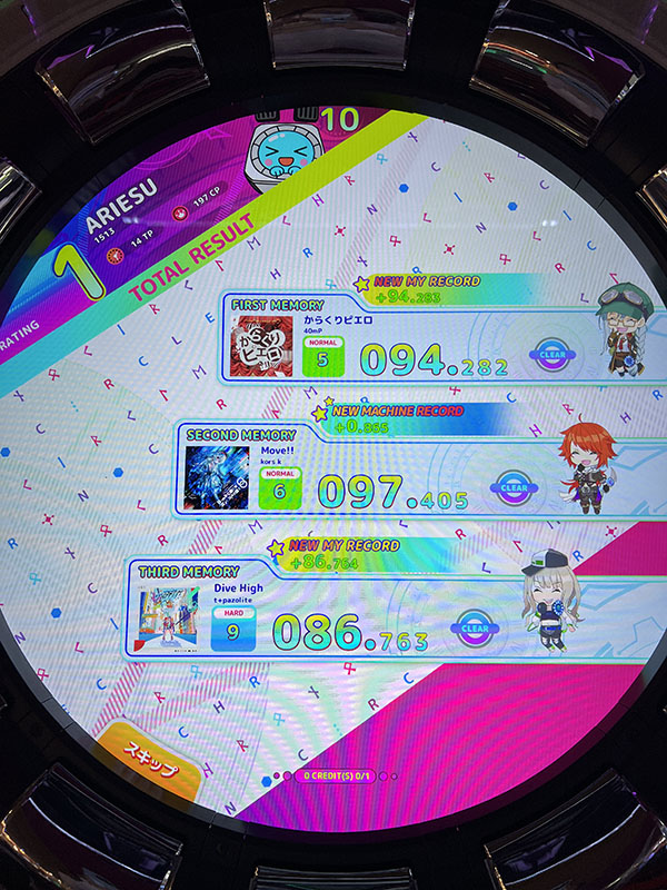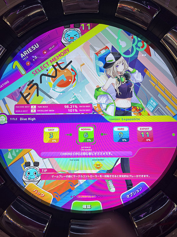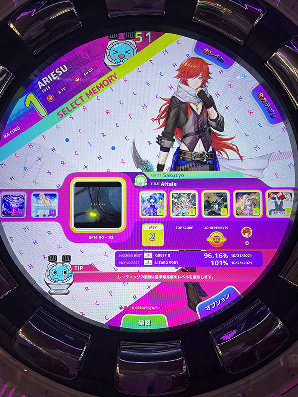 ■タッチエリア・サークルエリアのプレータッチエリアのノートは4つあります。タイミング合わせて画面にタッチする「POP」。タイミング合わせてノーツを長押しする「HOLD」。最初にタッチした場所をタイミング合わせてタッチする「KNOCK」。タイミングに合わせて切るようにノーツをなぞる「SLASH」。サークルエリアのノートは5つあります。タイミング合わせてボタンを押す「TICK」。タイミング合わせてボタンを押す(ボタンに付いて行きません)「TACK」。タイミングに合わせてボタンを押したままになぞる「TOCK」。ノーツがきたら車のハンドルのように回す「DRIVE」。タイミング合わせてコントローラーを右 or 左に回す「SPIN」。 ノートがタッチエリア・サークルエリアそれぞれにあるので、慣れるまではプレイしていて少し忙しい・頭でわかっていても手が思うように動かない、プレイしていてそういう印象を受けました。反面、上手にできるとプレイ爽快感が高まりました。 ■収録楽曲ロケテストでは全20曲収録されていました。J-POP曲・K-POP曲・VOCALOID曲といった版権曲。他の音楽ゲームにも収録されているVARIETY曲。そして、クロノサークルオリジナル楽曲。ラインナップ・楽曲提供者をみると、コアな音楽ゲームファン向け、といった印象を受ける収録楽曲です。■クロノサークルWebサイト内のMY PAGEプレイデータをWebサイトで確認することができます。リンク先:https://chrono-circle.com/bbs/login.php?url=/ サイトからAM-PASS.NETアカウントでログイン。もしくは、ゲームID作成時に連携したSNSアカウントでログインすることで、MY PAGEへアクセスできます。 ![]() ![]() ![]() ![]() ■ロケテストを振り返って(10/23(土)を振り返って)10月23日(土)は大阪で行われた『QuizKnock STADIUM』のロケテストに参加。ロケテスト後に新幹線で新横浜→横浜へ移動し、17時30分頃ラウンドワン横浜駅西口店到着しました。この日はプレイに必要な整理券を配布していて、実際にプレイできたのは21時頃と遅い時間でした。それだけ、新作音楽ゲームに興味を持っているプレイ希望者が多かった証拠です。プレイしている人をみていると、ほとんどがコアな音楽ゲームユーザーという印象で、難しい難易度の楽曲を器用にプレイしている人が多かったです。 |