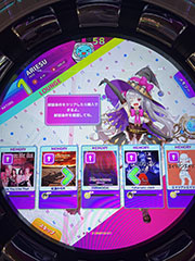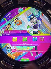 Andamiro社の音楽ゲームです。2021年7月にクローズドベータテストが都内で開催(筆者はクローズドベータテスト落選したので参加できませんでした)され、今回初めてロケテストが開催されました。 回転式コントローラーが目をひく筐体です。 ■ゲーム機の筐体![]() ![]() ![]() ![]() ![]() ![]() 筐体はタッチエリア・サークルエリアの2つあります。この筐体の特長のひとつは、サークルエリアの「新型回転式コントローラー」です。360度左右にスムーズに回転する大型コントローラーは回していて楽しくなります。サークルエリアの外側にはボタンが12個あります。 タッチエリアは、36インチのフルタッチスクリーンです。画面を直接タッチして操作します。 足元はイコライザー振動ステージがあります。曲に合わせて足場が光ったり、振動します。振動はそこまで大きく感じませんでした。 ■ゲームのフロー