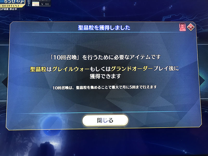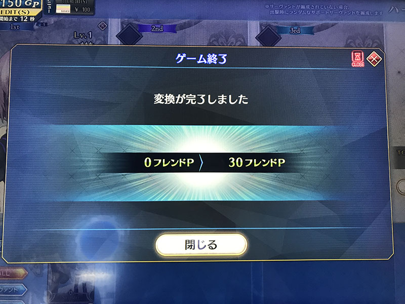 2018年6月9日 | 1回プレイ ・セガ神楽坂でプレイ ・300円、900GP購入でプレイ ・対戦後の召喚(ガチャ)で300円使用 ・合計600円使用 |