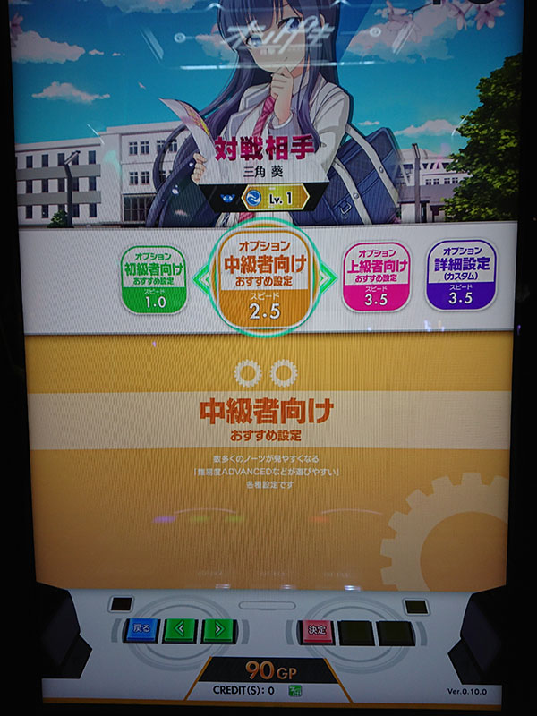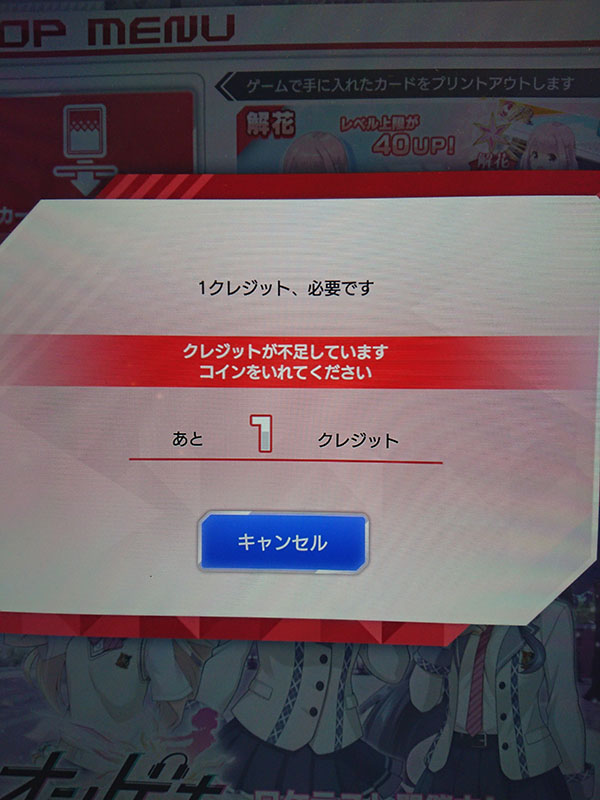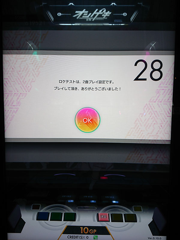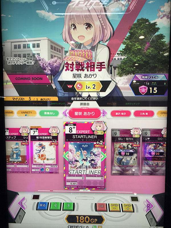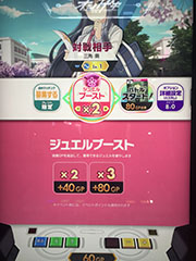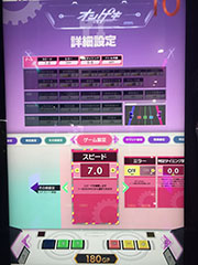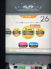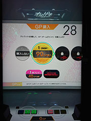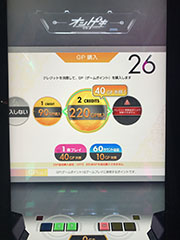 1クレジット料金 | コイン100円 ※GP制。100円で90GP・200円で220GP・300円で360GP。 5月15日より、300円(360GP)は中止。 1曲プレイで40GP消費。 |