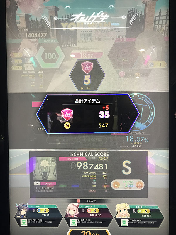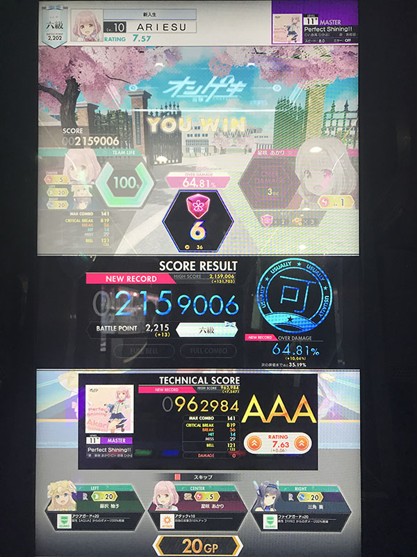 2018年5月16日 | 3回プレイ ・セガ秋葉原3号館で2回、4号館で1回プレイ ・いずれも200円、220GP購入でプレイ |