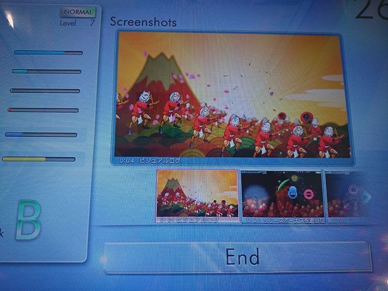 - ゲーム画面に移行します。演奏終了時に、画面左上にあるゲージが70%を超えるとクリアです。