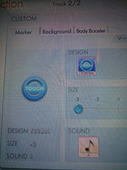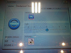 ゲームをプレイしやすくするためのカスタマイズ要素が用意されています。選曲画面の左側に「CUSTOM」がありますので、それをタッチすると下記3つのカスタマイズができます。