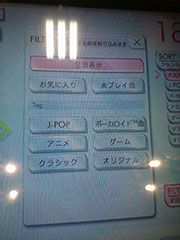 また、楽曲をフィルターで絞り込むことも出来ます。ジャンル別や未プレイ曲であったり、好きな曲をあらかじめ選曲画面から「お気に入り」に追加して、絞り込むことも出来ます。