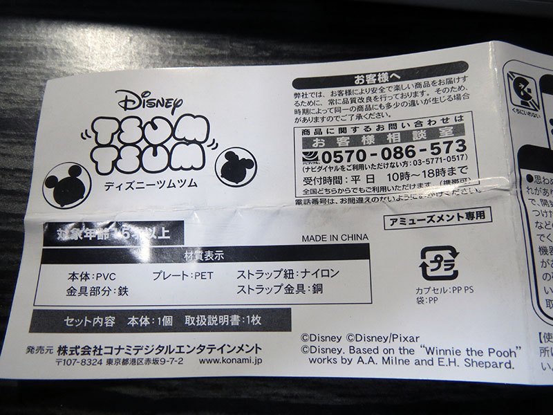ツムは、上のようなカプセルの中に入っています。カプセルの上と下には穴が開いていますので、このカプセルを筐体に置けば認識されます。