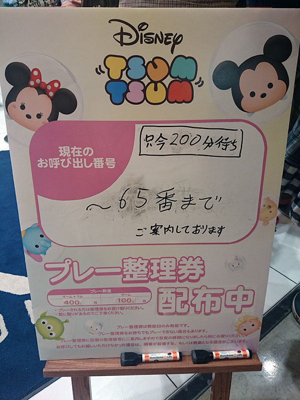 3日目は9時開店に合わせて行ったのですが、あっという間に人が集まってきて開店後5分もたたずに20人近く集まりました。早速整理券が配布されましたが、もらっていく人が絶えない状況でした。11時頃で140番台の整理券が配布されていたようです。とはいえ、1プレイの時間は決して長くないので回転はわりと早かったと思います。